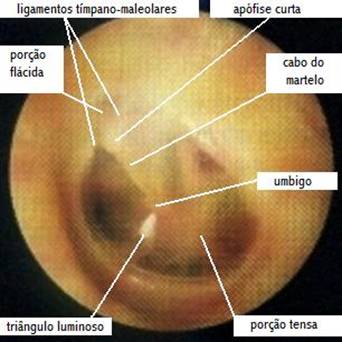 À otoscopia devem-se visualizar alguns pontos anatômicos de referência: